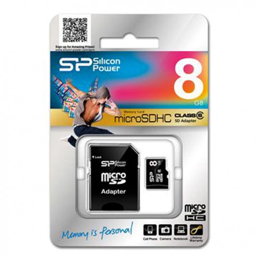Карта памяти Silicon Power MicroSDHC на 8 Гб — это универсальное запоминающее устройство, которое можно использовать с видеорегистратором, навигатором, смартфоном или планшетом, а также другими гаджетами, снабженными соответствующим MicroSD-разъемом. А за счет SD-адаптера, который идет в комплекте с картой, ее можно использовать и в устройствах с SD-разъемом.