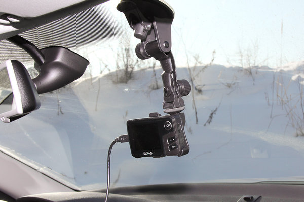 Автомобильный регистратор LR-3000 удобно крепится на лобовое стекло и не мешает обзору во время движения.
