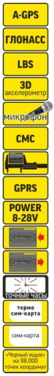 • Получение координат на мобильный телефон или на сервер мониторинга в интернете
