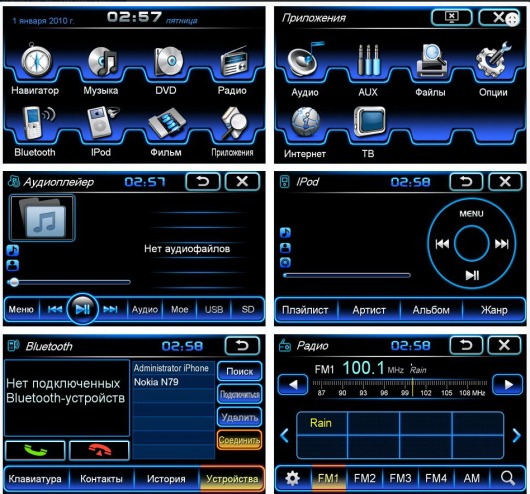 Кроме прочего, с помощью этого головного устройства вы сможете выходить в интернет и пользоваться функциейотображения пробок на дороге. Благодаря этой функции навигатор в вашей магнитоле будет прокладывать дорогу с учетом пробок, т.е. выбирать для вас самый быстрый и оптимальный путь. Чтобы появились доступ в Интернет и функция отображения кнопок, нужен модем Intro GPS 3G. Модем не входит в стандартную комплектацию и приобретается отдельно.