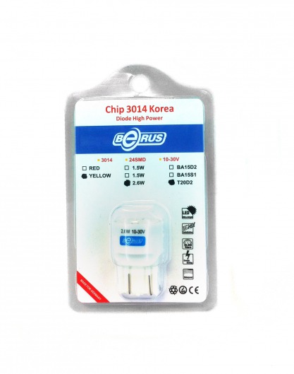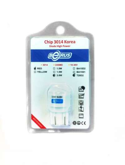 Светодиодная лампа T20 2.6W предназначена для установки в противотуманные фары и указатели поворотов. Она намного ярче обычных галогеновых ламп, отлично освещает дорогу даже в самую непроглядную темноту и сильный ливень. Цвет свечения со временем не изменяется. Служит такая лампа очень долго, при этом потребляет незначительное количество энергии.