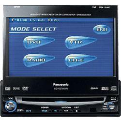 DVD-ресивер с монитором Panasonic CQ-VD7001N встраивается в приборную панель, имеет графический пользовательский интерфейс и управляется при помощи удобной сенсорной панели или пульта дистанционного управления. Модель также имеет стильную голубую подсветку кнопок.
