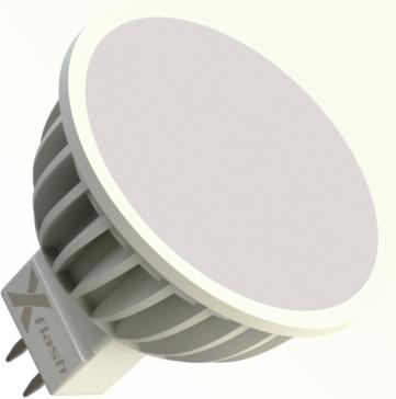 Светодиодная лампа X-Flash Spotlight GU 5.3 4W – это отличная альтернатива галогеновой лампе с цоколем MR16. Потребляемая мощность — 4 Вт. Яркость — 300 Лм, а температура свечения – 3000 K (это желтый свет). Рабочее напряжение — 220V. Высокий индекс цветопередачи обеспечивает четкое и контрастное восприятие. К тому же, такая лампочка не содержит ртутных паров в колбе (в отличие от люминесцентных), а значит, при повреждении не представляет опасности для здоровья.