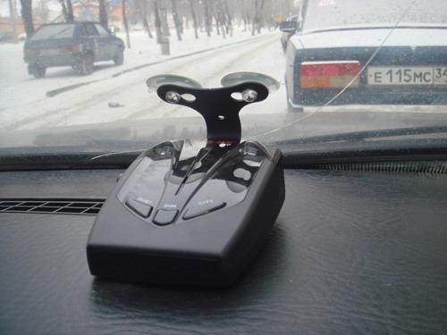 Устанавливается Sho-me 520 двумя способами. Первый - это установка на лобовое стекло при помощи специальных присосок. Второй - это крепление на приборной панели при помощи двухстороннего скотча. После установки и подключения прибора к бортовой сети автомобиля автоматически активируется режим самодиагностики.