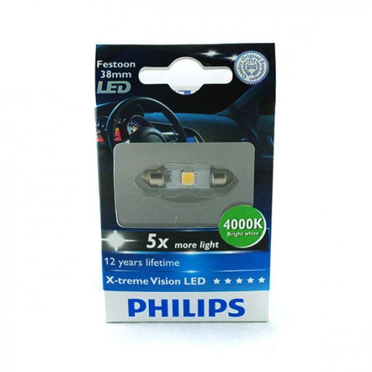 Светодиодная лампа C5W Philips X-Treme Vision 38mm 4000K (теплый белый свет)