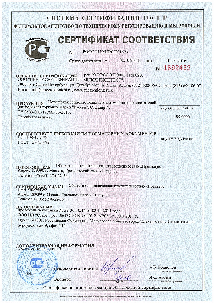А для дизельных двигателей авто одеяло «Русский стандарт» —