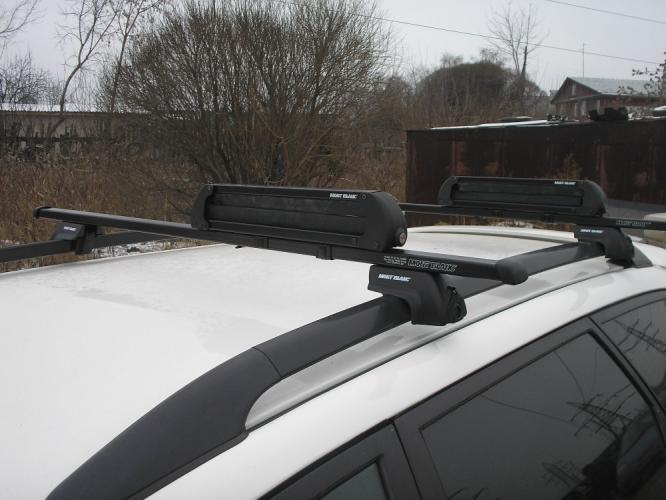 Это универсальное лыжное крепление можно устанавливать на любую марку машины любого года выпуска. Для установки вам понадобятся лишь стандартные багажные поперечины прямоугольного профиля.
