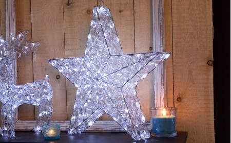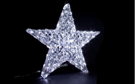Световая фигура "Diamond Serie led" в виде 3D звезды — это необыкновенно яркая объёмная фигура для новогодних композиций и декора, которая состоит из 50 светодиодов белого свечения. Металлический каркас данной светодиодной фигуры дополнен стеклянными стенками. А горящие в ней маленькие Led диоды создают необычайную игру света, которая дарит море положительных эмоций!