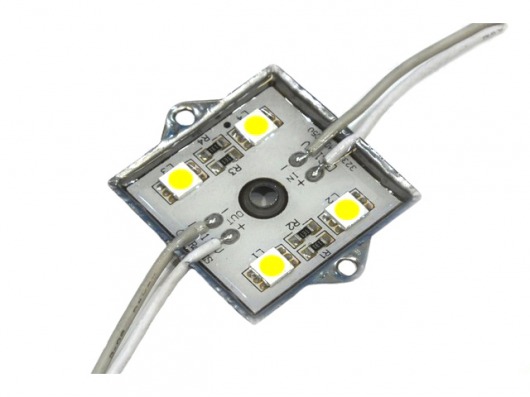 Квадратный светодиодный модуль MS 5050-4 IP65 5760Lm — это 4 диода SMD 5050 и резисторы с рабочим напряжением 12V, которые находятся в металлическом корпусе. Яркость 1 диода составляет 72Lm, а всей упаковки — 5760Lm, что дает вам очень яркое и насыщенное свечение. Корпус залит двухкомпонентным компаундом. Поэтому вы можете использовать светодиодный модуль led в условиях повышенной влажности и резкого перепада внешней температуры от -30 до +50 градусов.