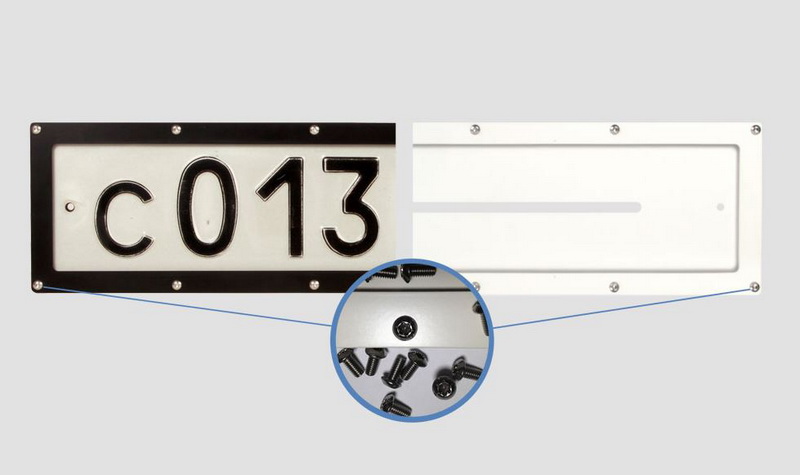 • Бронированная система состоит из 3 частей: подложки, средней рамы и внешней укрепляющей рамки. Такая конструкция надежно держит табличку с номером, не позволяя злоумышленнику подобраться к его краям.