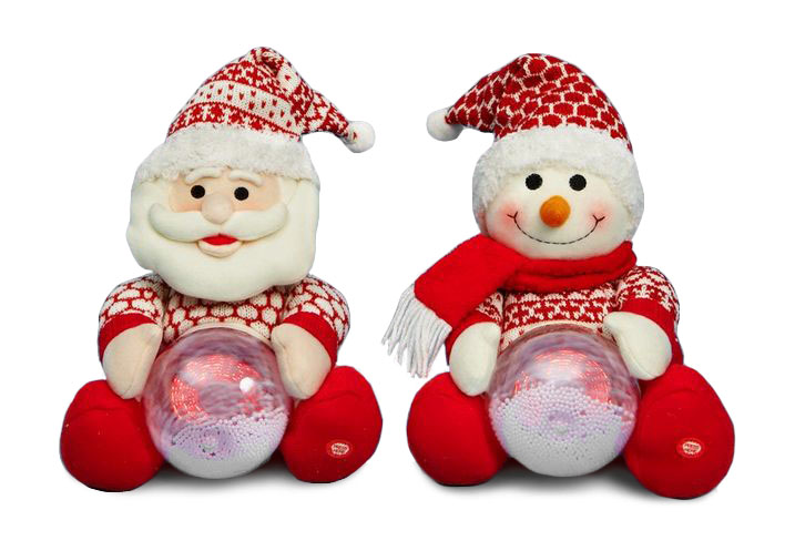 Анимационная музыкальная мягкая игрушка Санта со снежным шаром подарит прекрасное новогоднее настроение вам и вашим детям. Высота игрушки — 23 см. Санта музыкальный и анимационный: как только вы нажмете на кнопочку на левой ноге игрушки, Санта начнет напевать праздничную песенку и забавно качать головой в такт. А в сноуболле весело закружатся снежинки и начнется маленькая метель. Представьте только, в каком восторге будут дети! Да и любой взрослый будет рад такому подарку.