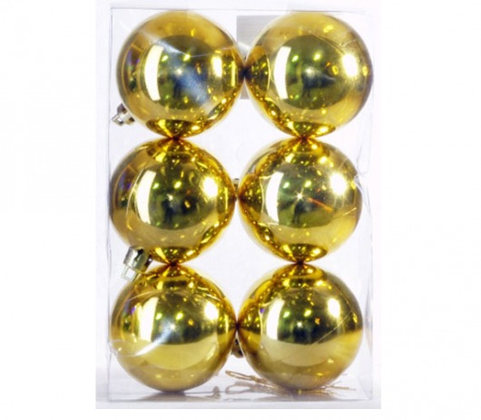 В набор PeneriGifts входят 6 золотистых елочных шаров с глянцевой поверхностью. Двух-трех таких наборов будет вполне достаточно, чтобы нарядить комнатную елку.