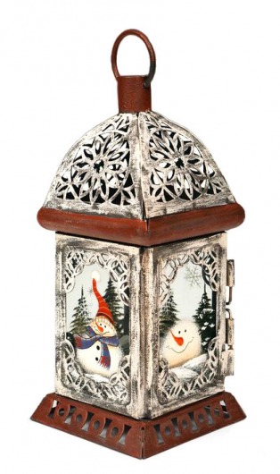 Вопросы и отзывы про Фонарик рождественский со снеговиками и белой резной крышей (9,5 х 9,5 х 21 см)