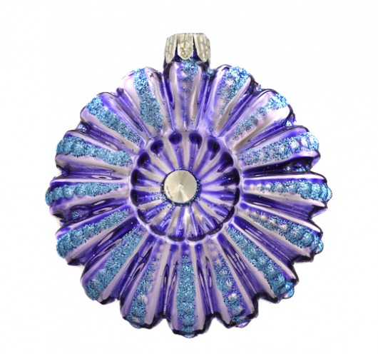 Медальон "Лавандовая свежесть" - изящное и утонченное украшение для комнатной елки. В середину елочной игрушки вставлен крупный страз, прелесть которого красиво подчеркивает фиолетово-голубая расцветка медальона. Диаметр елочного украшения - 8 см.