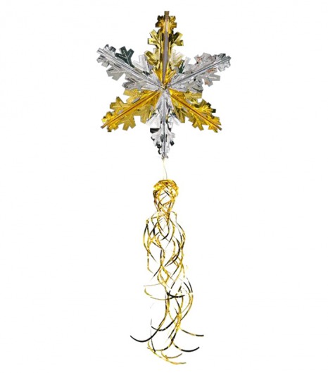 Звезда из фольги серебряно-золотая с подвеской (30 см, 24 шт.)