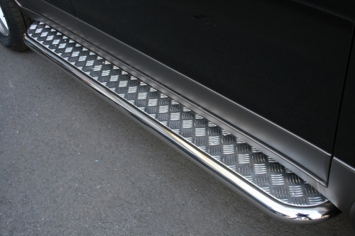 Боковые пороги-подножки сделаны специально для автомобилей Hyundai ix55 от 2009 г.в., поэтому устанавливаются достаточно просто и без повреждений корпуса. Помимо этого, стальные пороги с листом для Хендай ix55 смотрятся очень стильно и эффектно. Они добавят вашему авто еще больше солидности и внушительности.