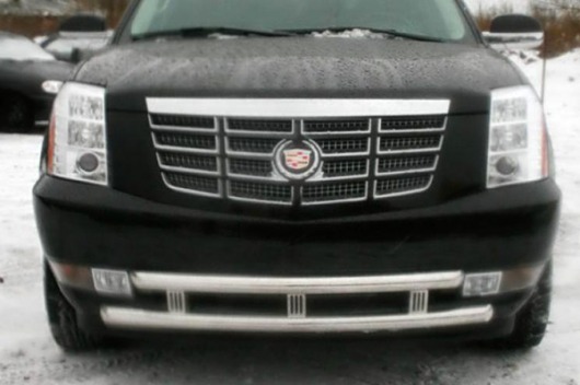 Защита переднего бампера труба предназначена для автомобилей Cadillac Escalade 2007-2010 г.в. Вам не придется подгонять защиту под размеры бампера вашего авто. И с монтажом проблем не возникнет: установка защиты переднего бампера производится в штатные отверстия, а значит, необходимость сверлить кузов отпадает.