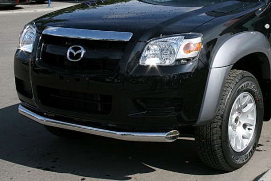 Труба на бампер Mazda BT-50 защищает передний бампер автомобиля от различных механических повреждений при мелких ДТП и неудачных парковках, а также незаменима при езде по бездорожью. А кроме этого, труба на передний бампер Мазда БТ-50 смотрится очень стильно и эффектно.