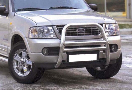 Защитная решетка переднего бампера предназначена для автомобилей Ford Explorer 2003-2005 г.в. Вам не придется подгонять передний кенгурятник под размеры кузова вашего авто. И с монтажом проблем не возникнет: установка кенгурятника Ford Explorer производится в штатные отверстия, а значит, необходимость сверлить кузов отпадает.