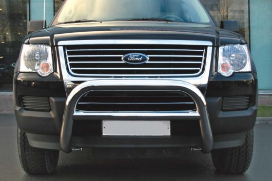 Передняя решетка Ford Explorer (кенгурятник) – это защитная дуга на бампер из нержавеющей стали диаметром 76 мм.