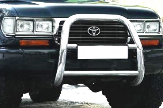 Передняя решетка Toyota Land Cruiser 80 (кенгурятник) – это защитная дуга на бампер из нержавеющей стали диаметром 76 мм.