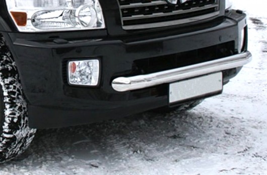 Труба на бампер Infiniti QX56 защищает передний бампер автомобиля от различных механических повреждений при мелких ДТП и неудачных парковках, а также незаменима при езде по бездорожью. А кроме этого, труба на передний бампер Инфинити QX56 смотрится очень стильно и эффектно.