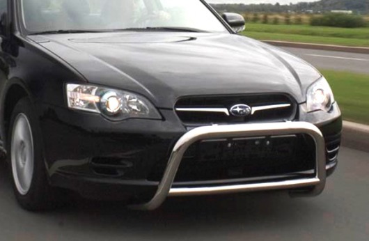 Передняя решетка Subaru Legacy Outback (кенгурятник) – это защитная дуга на бампер из нержавеющей стали диаметром 60 мм.