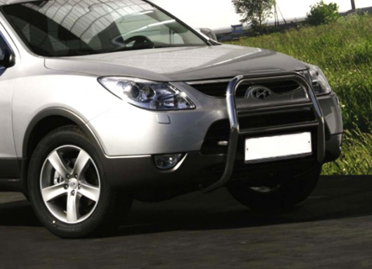 Передняя решетка Hyundai ix55 (кенгурятник) – это защитная дуга на бампер из нержавеющей стали диаметром 60 мм.