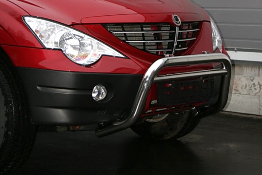 Решетка бампера SsangYong Actyon Sport защищает передний бампер автомобиля от различных механических повреждений при мелких ДТП и неудачных парковках, а также незаменима при езде по бездорожью. А кроме того, низкий мини-кенгурятник Санг Енг Актион Спорт смотрится очень стильно и эффектно. Он добавит вашему авто еще больше брутальности и солидности.