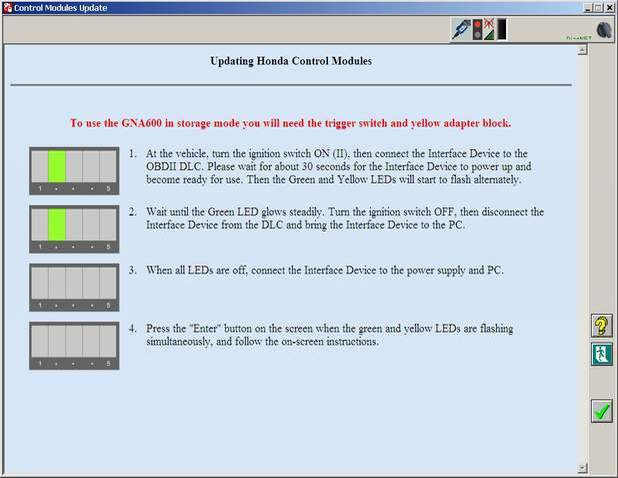 Чтобы начать работу, вам достаточно подсоединить диагностический сканер GNA600 к автомобилю (разъем OBD2) и к компьютеру (при помощи USB-порта). Предыдущая же версия устройства (автосканер Honda Him) работает через COM-порт.