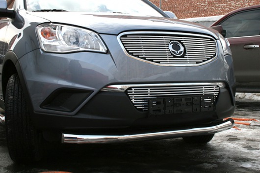 Труба на бампер SsangYong Actyon защищает передний бампер автомобиля от различных механических повреждений при мелких ДТП и неудачных парковках, а также незаменима при езде по бездорожью. А кроме этого, труба на передний бампер Санг Енг Актион смотрится очень стильно и эффектно.