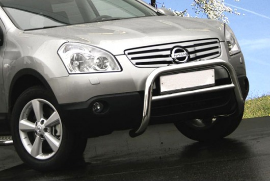 Передняя решетка Nissan Qashqai+2 (кенгурятник) – это защитная дуга на бампер из нержавеющей стали диаметром 60 мм.