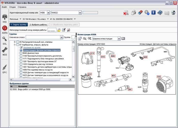 3. Программа Mercedes-Benz WIS/ASRA Net 2014 содержит полную информацию по ремонту (описания операций, электросхемы), обслуживанию и нормо-часам (ASRA) всех автомобилей марки Mercedes-Benz. Программа содержит подробную информацию по ремонту всех агрегатов, электрики, мотора и коробок передач транспортных средств марок Mercedes-Benz, Maybach, Smart.