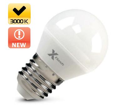 Светодиодная лампа X-Flash Globe E27 5W — лампа общего освещения. Колба имеет шарообразную форму, матовая. Уникальный радиатор led лампы способствует понижению температуры внутри нее, тем самым увеличивается срок службы. Данная модель рассчитана на напряжение 220 В. Мощность диодной лампы X-Flash — 5 Вт., яркость — 380 Лм, а температура свечения  3000 K (это желтый свет).