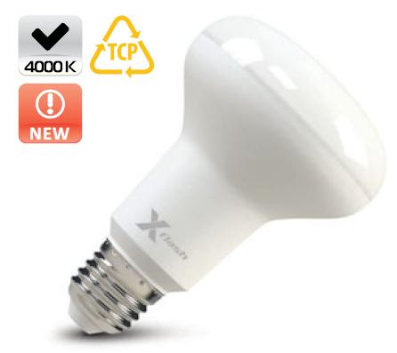 Светодиодная лампа X-Flash FUNGUS E27 10W выполнена в форме лампы-рефлектора, корпус изготовлен из теплорассеивающей пластмассы, что значительно повышает ее безопасность и снижает ее вес. По форме, цоколю и размерам led лампа соответствует аналогичным люминесцентным лампам и лампам накаливания. Она имеет алюминиевый радиатор, который эффективно понижает температуру внутри лампы. Данная модель рассчитана на напряжение 220 В. Мощность диодной лампы X-Flash — 10 Вт., яркость — 850 Лм, а температура свечения – 4000 K (это нейтральный белый свет).