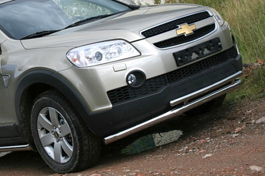 Защита переднего бампера для Chevrolet Captiva – это двойная труба на бампер из нержавеющей стали диаметром 60/42 мм.