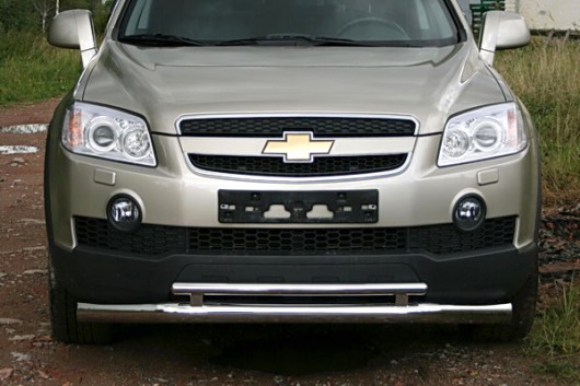 Защита переднего бампера для Chevrolet Captiva – это двойная труба на бампер из нержавеющей стали диаметром 76/42 мм.