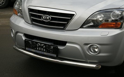 Защита переднего бампера труба предназначена для автомобилей Kia Sorento от 2006 г.в. Вам не придется подгонять защиту под размеры бампера вашего авто. И с монтажом проблем не возникнет: установка защиты переднего бампера производится в штатные отверстия, а значит, необходимость сверлить кузов отпадает.