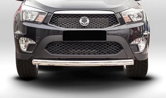 Труба на бампер SsangYong Actyon Sport защищает передний бампер автомобиля от различных механических повреждений при мелких ДТП и неудачных парковках, а также незаменима при езде по бездорожью. А кроме этого, труба на передний бампер Санг Енг Актион Спорт смотрится очень стильно и эффектно.