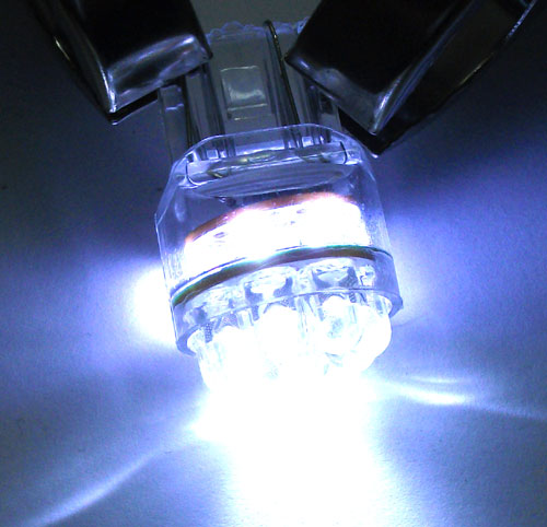 Лампа светодиодная 7440 бесцокольная двухконтактная для установки в габариты, стоп-сигналы и повторители поворота состоит из 9 светодиодов на торце лампы и 4 по окружности.