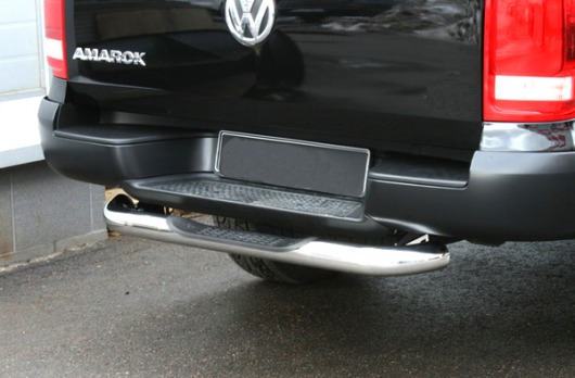 Защита заднего бампера для Volkswagen Amarok – это короткая труба на бампер из нержавеющей стали диаметром 76 мм.