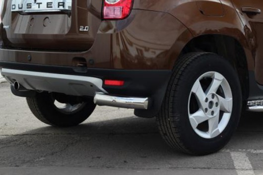 Защита заднего бампера для Renault Duster – это защитные уголки на бампер из нержавеющей стали диаметром 76 мм.
