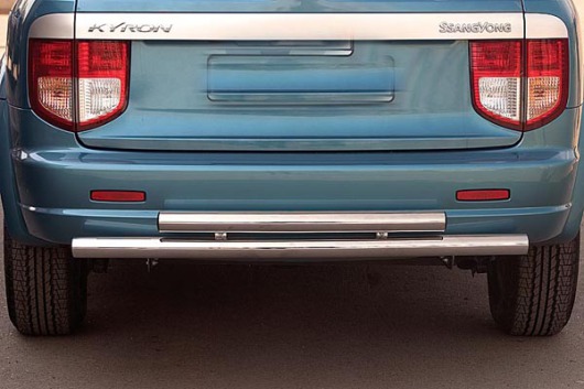 Труба на задний бампер SsangYong Kyron защищает задний бампер автомобиля от различных механических повреждений при столкновениях на дороге и неудачных парковках. А кроме этого, защита заднего бампера для Ссанг Енг Кайрон — это дополнительная деталь тюнинга.