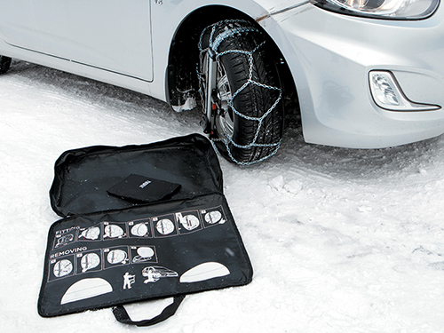 Цепь противоскольжения очень легко устанавливается: она имеет внутреннюю арочную систему установки, т.е. одевается с верхней части и фиксируется внизу колеса. Вам не придется использовать домкрат для того, чтобы надеть автоцепь на колесо.