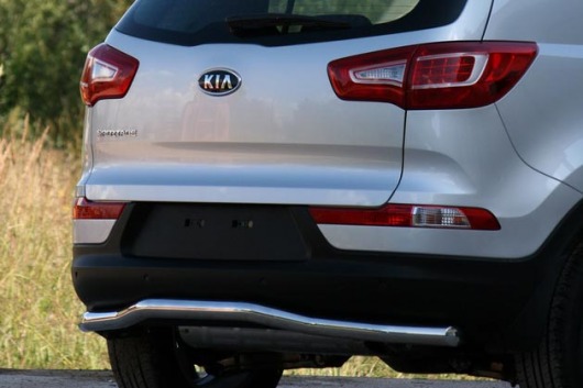 Защита заднего бампера для Kia Sportage – это изогнутая труба на бампер ("волна") из нержавеющей стали диаметром 60 мм.