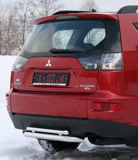 Труба на задний бампер Mitsubishi Outlander XL защищает задний бампер автомобиля от различных механических повреждений при столкновениях на дороге и неудачных парковках. А кроме этого, защита заднего бампера для Митсубиси — это дополнительная деталь тюнинга.