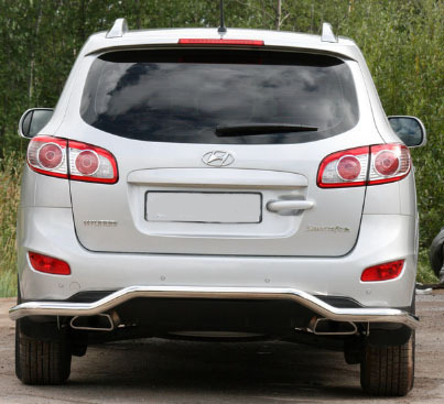 Защита заднего бампера для Hyundai Santa Fe – это изогнутая труба на бампер ("волна") из нержавеющей стали диаметром 60 мм.