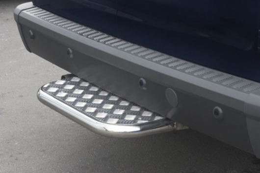 Труба на задний бампер Ford Connect защищает задний бампер автомобиля от различных механических повреждений при столкновениях на дороге и неудачных парковках. А кроме этого, ступень на задний бампер для Форд Коннект — это еще и деталь тюнинга, а также дополнительная подножка для авто. Красиво и практично.