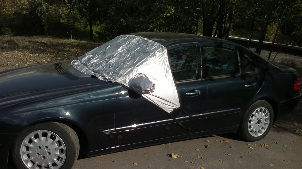 • Защита летом от солнца. Авточехол двусторонний, внутренняя сторона светоотражающая – её удобно использовать летом. В ясный день чехол не даст салону машины нагреться от прямых солнечных лучей, падающих через лобовое стекло.