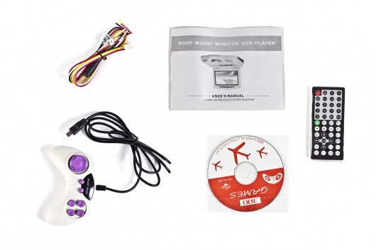 В-третьих, в комплект к автомобильному потолочному монитору DVD идет диск на 300 игр и проводной джойстик. Благодаря этому вы можете еще больше разнообразить дальнюю поездку как себе, так и своим пассажирам. А уж дети такое предложение наверняка оценят и скажут вам «спасибо»!
